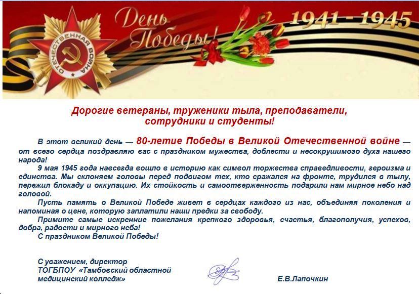 Сегодня для студентов Тамбовского областного медицинского колледжа состоялся тематический показ, совместно со Всероссийским просветительским проектом «Знание. Кино», посвящённого 80-й годовщине Победы. Подробнее…
