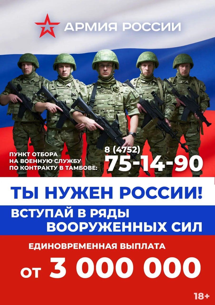 Информацию о службе по контракту можно получить в пункте отбора по адресу: г. Тамбов, ул. Степана Разина, д. 17/1, телефон 8 (4752) 75-14-90.
