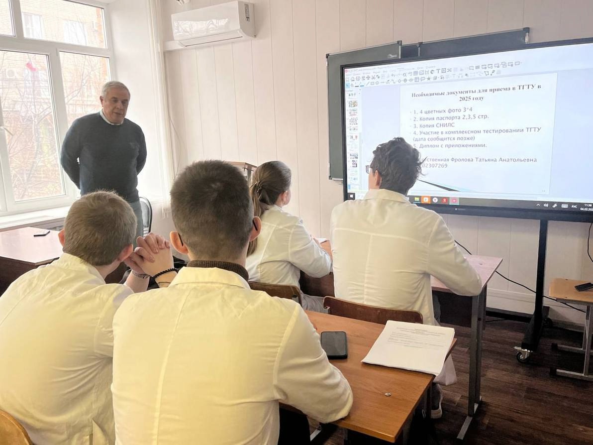 Колледж активно сотрудничает с высшими профессиональными образовательными учреждениями. Это Ярмарки вакансий, экскурсии в университеты, совместное участие в проектах разного уровня и профессиональных конкурсах. Недавно, представители Тамбовского Государственного Университета, кафедры «Биомедицинская техника», пришли в колледж на встречу с выпускниками. Студенты узнали об особенностях поступления в университет, сдаче экзаменов, работе, после окончания ВУЗа.