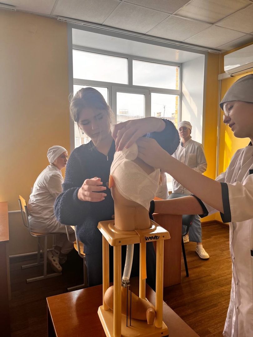 Учащиеся СОШ получили уникальную возможность познакомиться с современными учебными условиями нашего колледжа, который уже более 157 лет готовит специалистов в области здравоохранения. В ходе мероприятия школьники посетили симуляционные кабинеты и лаборатории, где могли ознакомиться с материально-технической базой колледжа, посмотреть мастер-классы и даже попробовать себя в роли настоящего специалиста-медика: фельдшера или, например, медицинской сестры. В ходе экскурсии преподавателями спецдисциплин Блынской Л.А., Васильевой К.К., Ерохиной М.В. и студентами колледжа 21 СД, 24 СД групп специальности «Сестринское дело» были продемонстрированы мастер-классы по сердечно-лёгочной реанимации, десмургии, оказанию первой помощи и другие.