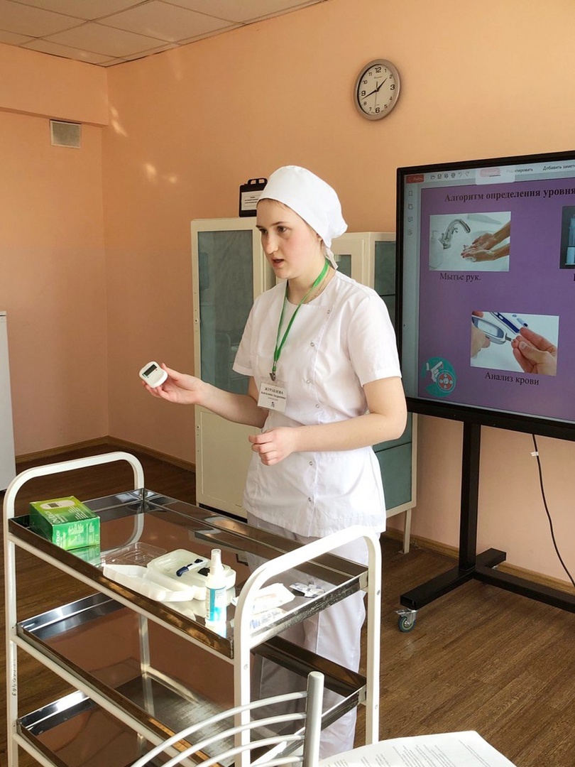 26 февраля состоялся первый день выступлений участников Регионального Чемпионата «Профессионалы» по компетенции «Медицинский и социальный уход». Сегодня участники выполняют модуль А (Сестринский уход за пациентом после огнестрельного ранения в условиях военного госпиталя (стационара) и модуль З (Организация и проведение занятия в рамках школы пациента с сахарным диабетом 2 типа).