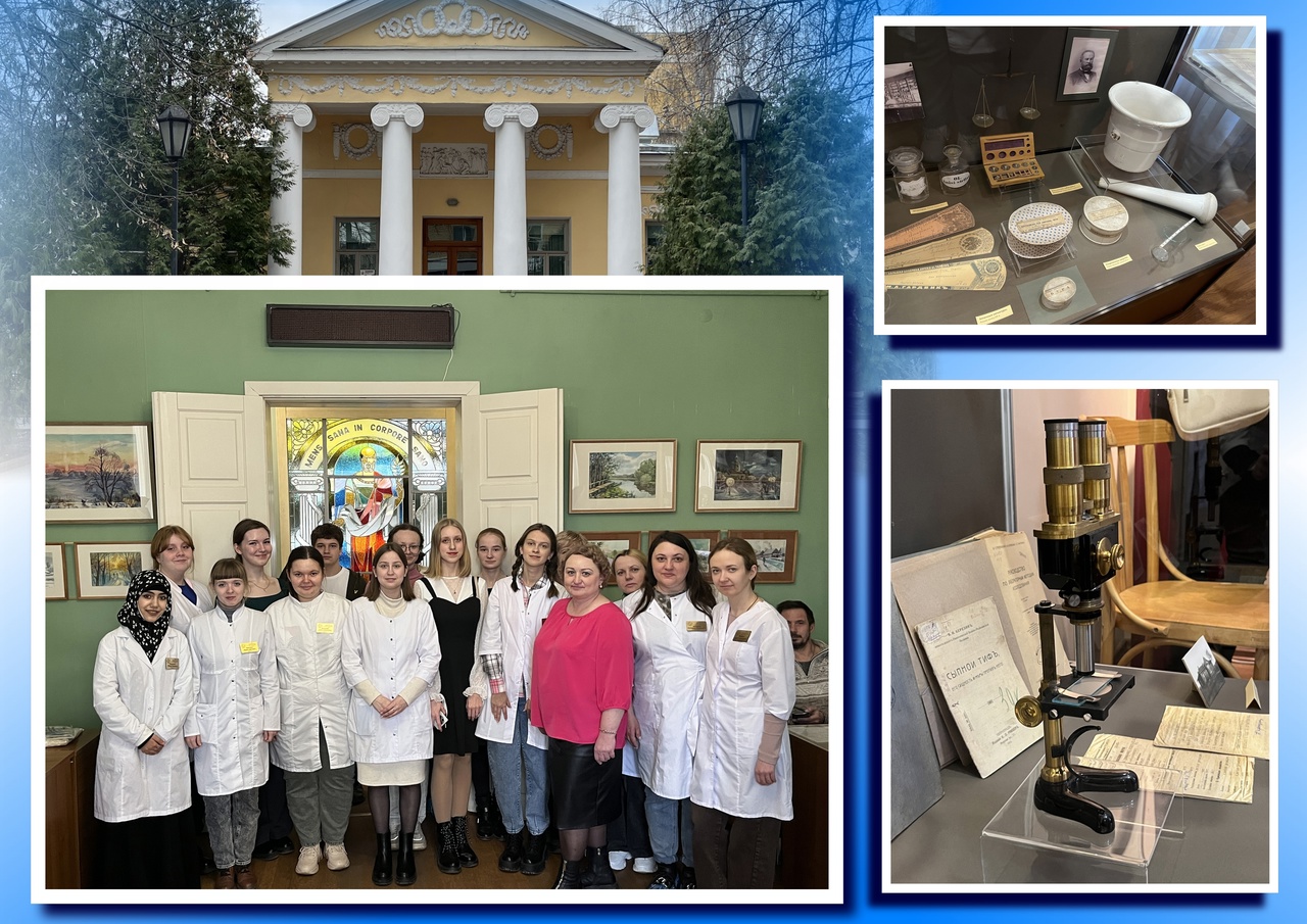 18 марта 2025 года студенты 1 курса специальности «Фармация» посетили Музей истории медицины Тамбовской области им. Я.И. Фарбера. Учебное занятие по истории фармации и медицины преподаватель Корчагина Татьяна Валентиновна провела в форме музейного урока с применением инновационных образовательных технологий музейной педагогики. Музейным предметом урока в нетрадиционной форме стала экспозиция, посвященная истории развития аптечного дела.
