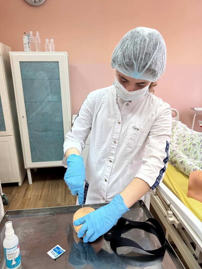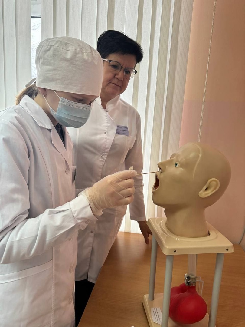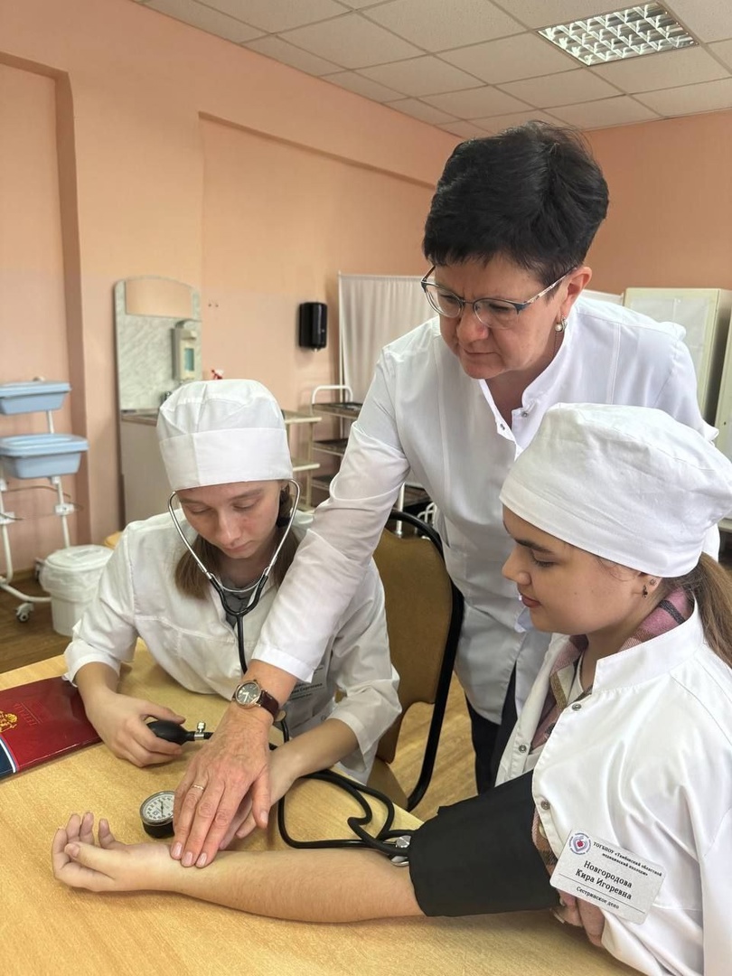 Подготовка к Региональному чемпионату «Профессионалы» 2025 в Тамбовской области по компетенции Медицинский и социальный уход идет активно. Студенты готовятся выполнять модули конкурсного задания: модуль А — Сестринский уход за пациентом после огнестрельного ранения в условиях военного госпиталя (стационара), модуль В — Патронаж пациента с острым тонзиллитом (ангиной) на дому, модуль Г — Патронаж пациента с бронхиальной астмой на дому, модуль Ж — Проведение иммунопрофилактики инфекционных заболеваний различным группам взрослого населению и др. Сегодня состоялся осмотр используемого оборудования и проведение мастер-классов по биомеханике, эргономике, снятию ЭКГ, использованию функциональной кровати. На мероприятии присутствовали студенты СПО ТГУ им. Г.Р. Державина, которые будут соперниками нашим конкурсантам при выступлении на Чемпионате. Участников и экспертов – наставников приветствовал директор колледжа — Лапочкин Евгений Владимирович, который пожелал успехов в подготовке и здоровой конкурентной борьбы.