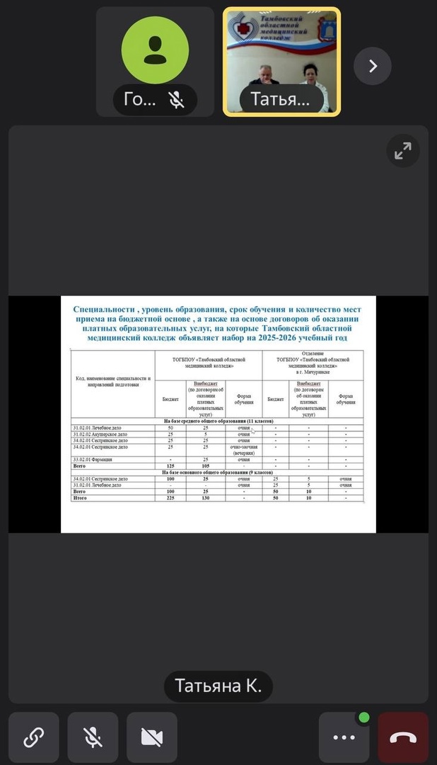 17 апреля 2025 состоялось предварительное трудоустройство выпускников текущего года. На заседании бюро присутствовали представители 30 кадровых служб медицинских и фармацевтических организаций Тамбовской области.
