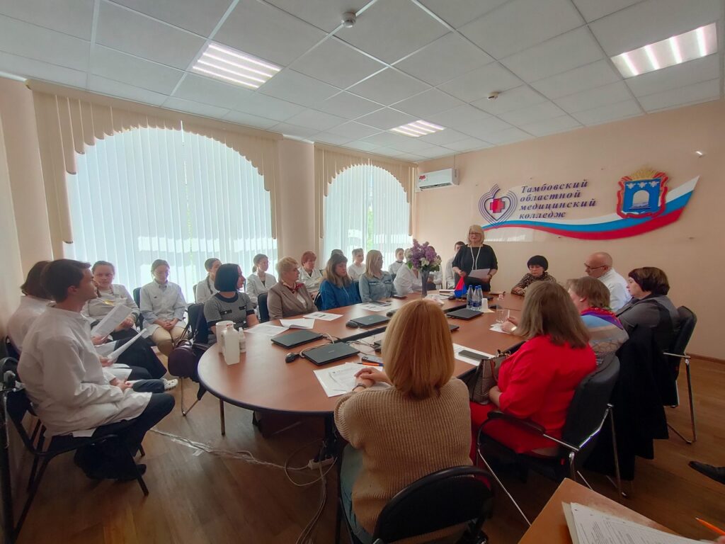 16.05.2025 в колледже состоялась научно-практическая конференция с элементами брифинга, совместно с представителями управленческого звена практического здравоохранения области, посвящённая Международному дню медицинской сестры «Обеспечение эпидемиологической безопасности в условиях современной медицинской организации». Участниками конференции были главные медицинские сестры ГБУЗ «ТОКБ имени В.Д. Бабенко», ТОГБУЗ «Тамбовская ЦРБ», ГБУЗ «Тамбовская областная детская клиническая больница», ОГБУЗ «Тамбовская инфекционная клиническая больница», ТОГБУЗ «ГКБ имени И.С. Долгушина г.Тамбова», а также старшие медицинские сёстры и врачи ТОГБУЗ «ГКБ имени Арх.Луки г.Тамбова», ТОГБУЗ «Городская клиническая поликлиника №5 г.Тамбова». В конференции принимал участие представитель ТГУ имени Г.Р. Державина профессор Щербинин П.П. – выпускник колледжа, профессор ТГУ имени Державина, доктор исторических наук, член общественной палаты Тамбовской области, врач-невролог высшей категории. Организаторами конференции выступали зам.директора по учебной работе, заслуженный учитель РФ, Балабанова Алевтина Николаевна, заместитель директора по практическому обучению Шишкова О.М., заведующие отделениями Ерохина М.В., Кострова Т.Н., методист колледжа Мелихов Ю.Ю., председатели цикловых методических комиссий Слышкина О.В., Цыганок А.В., Плужникова Н.В., Блынская Л.А. С другой стороны в обмене мнениями принимали участие студенты 31 ЛД группы –студенты-победители и призеры Чемпионата высоких технологий Портнова Юлия, Лебедев Максим и Михайлова Валерия. В онлайн формате подключились социальный партнёр нашего колледжа по профориентации директор МБОУ «Сатинская СОШ» Абрамова И.В., а также руководители отделения колледжа в г.Мичуринске.