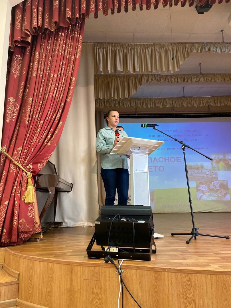 21.05.2025 студентка Тамбовского областного медицинского колледжа специальности «Сестринское дело» Бирюкова Валентина приняла участие в городском родительском собрании г.Тамбова на тему: «Безопасное лето» под председательством Министра образования и науки Тамбовской области Котельниковой Т.П. и начальника комитета образования г. Тамбова Васильевой И.Е.