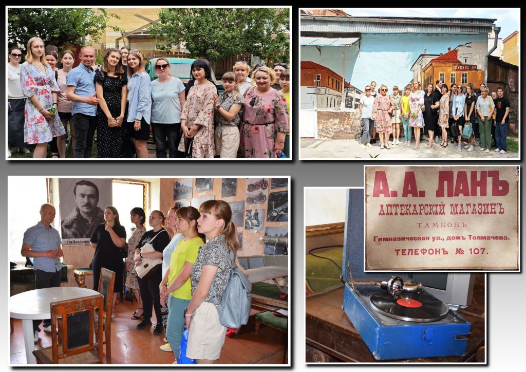 3 июня 2025 года преподавателем Корчагиной Татьяной Валентиновной в рамках краеведческой учебно-исследовательской работы организована экскурсия «Музей в подъезде». Студенты 11 фарм. побывали в старинной усадьбе Можарова Ивана Петровича – и погрузились в атмосферу XIX века. Будущие фармацевты увидели уникальные дореволюционные фотографии ул. Гимназической, на которой располагалась одна из крупнейших аптек города Тамбова – аптека А. Лана, познакомились с предметами старины, услышали голос знаменитой Клавдии Шульженко на настоящем патефоне и историю о Петре Владимировиче Можарове — гениальном русском изобретателе, конструкторе мотоцикла «Иж».