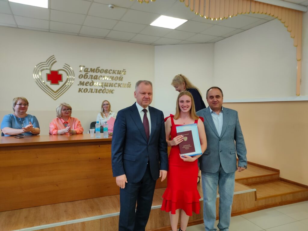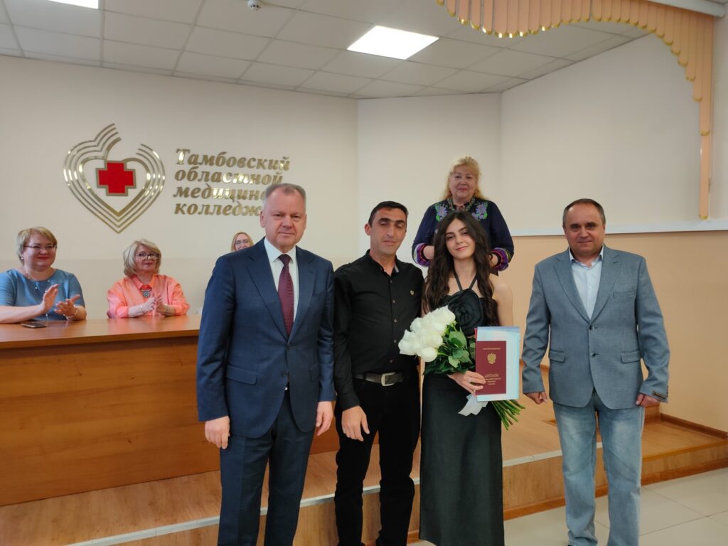 6 ноября 2025 состоялось торжественное вручение сертификатов на именную стипендию от Тамбовской областной организации профсоюза работников здравоохранения РФ. В этом году стипендии удостоены 5 студентов: Швецова Ксения (группа 31 ЛАБ), Сушкова Ирина (группа 31 ЛАБ), Гулиева Гунел (группа 22 СД), Пустовалова Юлия (группа 42 ЛД), Мацнев Артём (группа 42 ЛД).