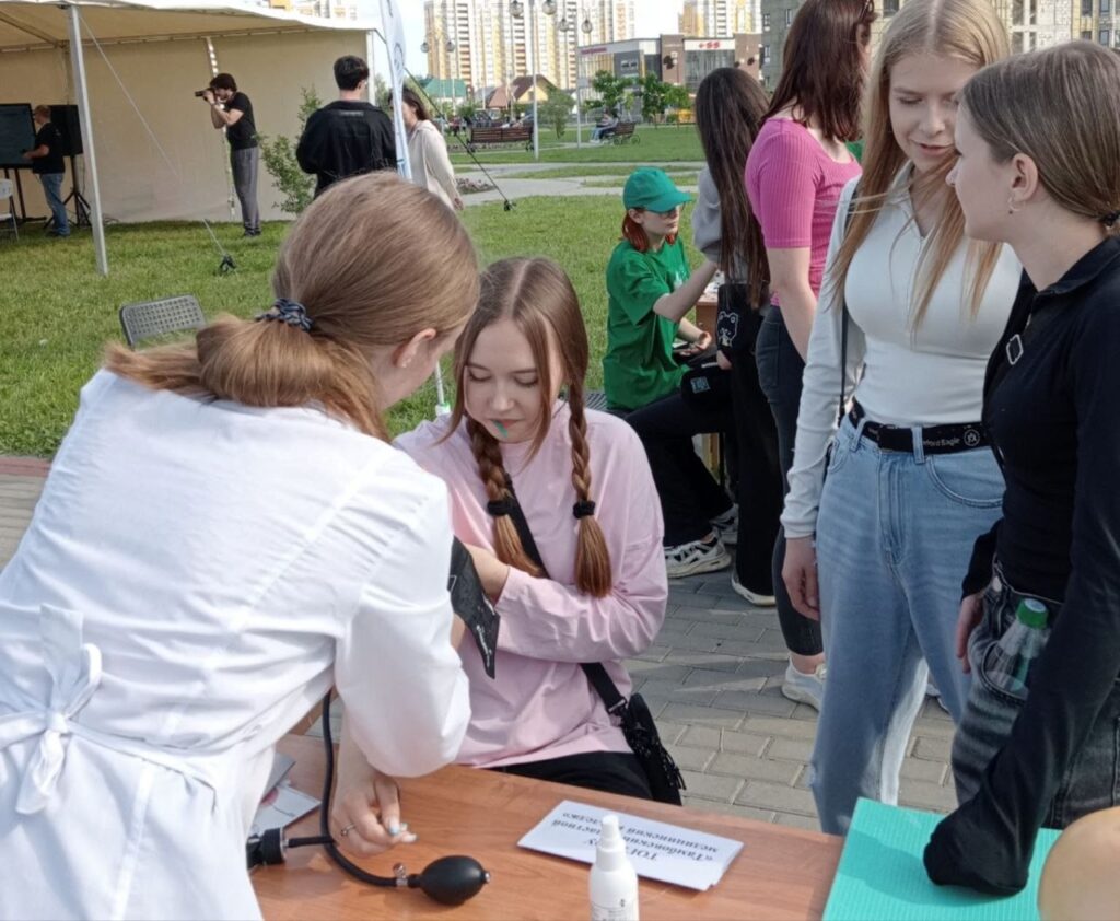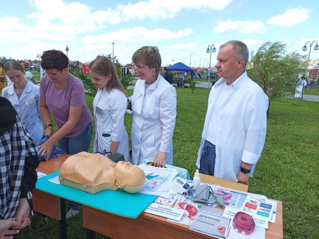 На мероприятии были представлены интерактивные площадки, где гости могли попробовать себя в роли медицинских работников: измерить давление, наложить жгут, попрактиковаться в пеленании новорожденного и оказании первой помощи.
