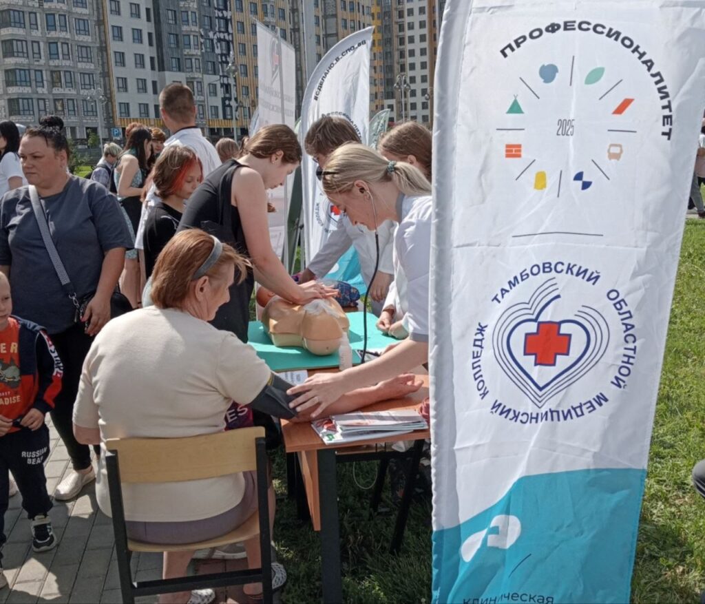 В рамках празднования Дня молодежи студенты и преподаватели медицинского колледжа приняли участие в профориентационной выставке, направленной на знакомство школьников и абитуриентов с профессиями. Выставка прошла 28 июня в Олимпийском парке г.Тамбова.