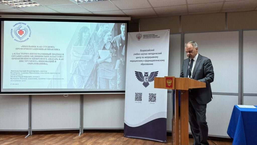 В соответствии с решением экспертной комиссии на базе ВУНМЦ Минздрава России Конкурса лучших практик образовательных организаций осуществляющих подготовку медицинских и фармацевтических кадров среднего звена Тамбовский областной медицинский колледж вошёл в число финалистов конкурса. Директор колледжа Лапочкин Е.В. представил доклад «Кластерно-интегративный подход в организации медицинских классов с применением цифрового аватара как инструмента инноваций в образовании» в г.Москве.