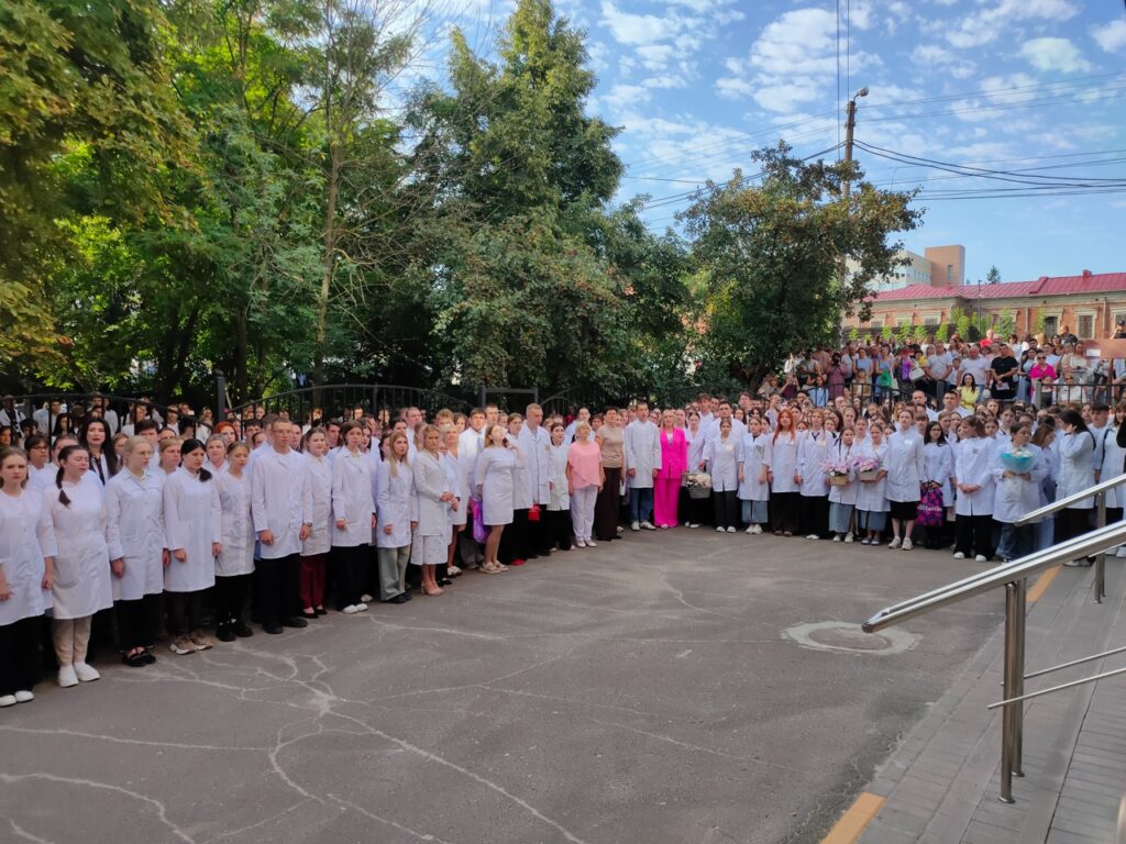 С приветственными словами и напутствиями к первокурсникам обратились директор колледжа Заслуженный работник здравоохранения РФ, кандидат педагогических наук Лапочкин Евгений Владимирович. Почётными гостями торжественной церемонии стали ветеран Специальной Военной Операции, награждённый медалью «За Отвагу», почётный донор РФ, меценат, партнёр и друг медколледжа Павел Николаевич Серёгин, главный внештатный специалист-эксперт по управлению сестринской деятельностью Министерства здравоохранения Тамбовском области Алевтина Евгеньевна Чудова, руководитель ресурсного центра «Развитие добровольчества профессиональных образовательных организаций Тамбовской области» Каяхов Александр Андреевич, региональный координатор проекта «Твой Ход» в Тамбовской области Никита Ильин, выпускник нашего колледжа 2018 года, лауреат стипендии имени Архиепископа Луки Владимир Молчанов. С ответным словом выступили студенты первого курса. В добрый путь!