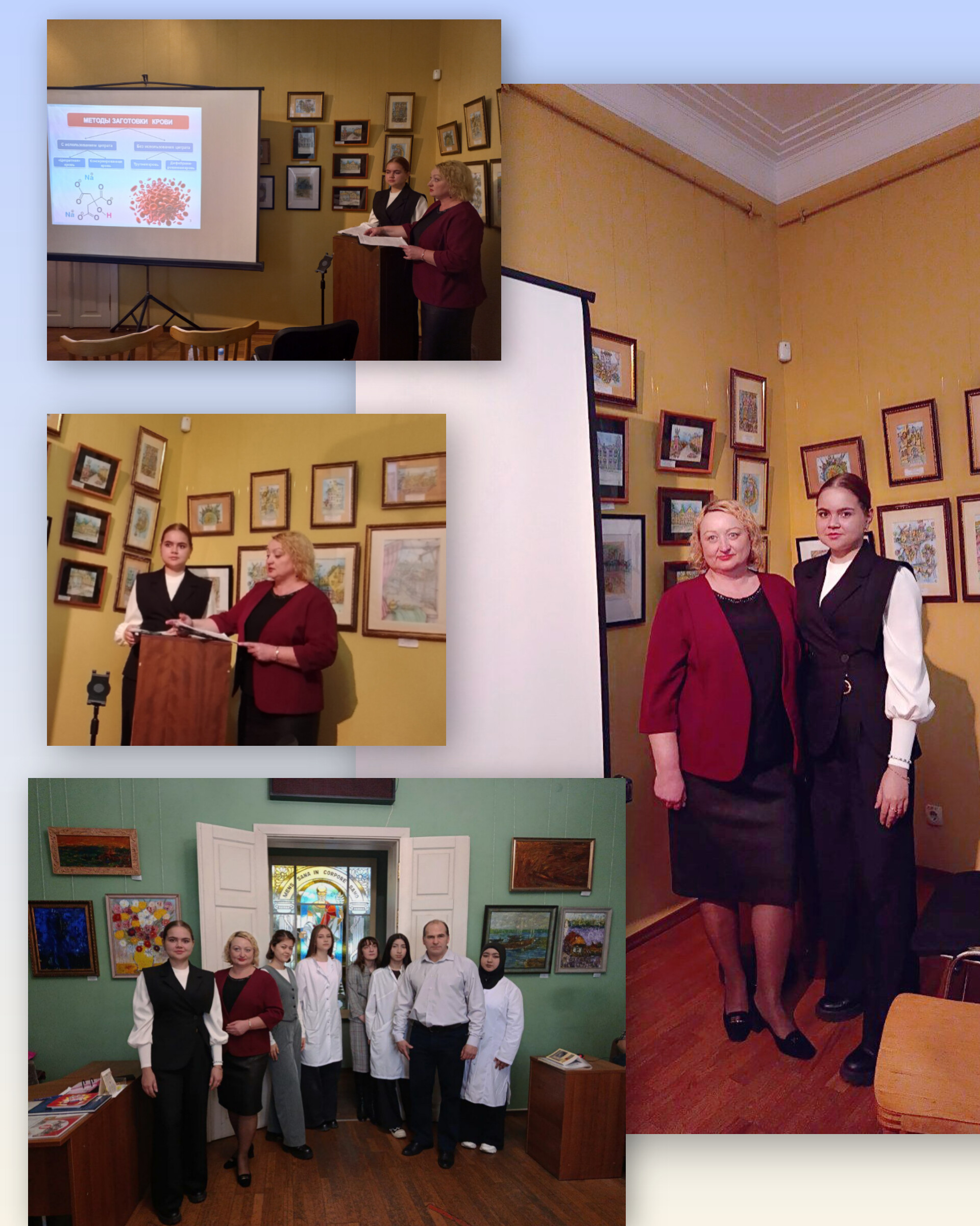 В работе секции «Образование, практика, опыт» студентка 2 курса, 21 группы специальности «Сестринское дело» Новгородова Кира Игоревна и преподаватель колледжа Корчагина Татьяна Валентиновна представили участникам конференции доклад «Методы консервации и переливания крови в годы Великой Отечественной войны».